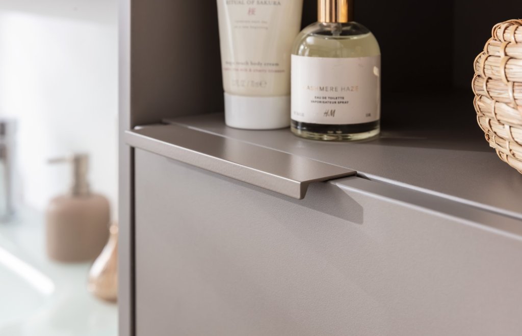 S H-midi omaro iz serije B.PARIS znamke Fackelmann boste v svojo kopalnico vključili kos pohištva, ki zavzema malo prostora, in vendar nudi veliko organizacijskih možnosti. Posebnost te omare sta dve odprti polici, ki ponujata dodatno mesto za dekoracije ali hiter dostop do vsakodnevnih toaletnih pripomočkov. Vrata se odpirajo na desno in se zapirajo mehko in tiho zahvaljujoč se vgrajenim blažilcem. V notranjosti sta dve stekleni polici, belo hrbtišče pa pričara občutek globine. Omara je izdelana v Nemčiji z veliko mero natančnosti. H-midi omarica B.PARIS (širine 40,2 cm, v dekorju Cubanit siva) je dostavljena že sestavljena, kar omogoča hitro in enostavno montažo.
