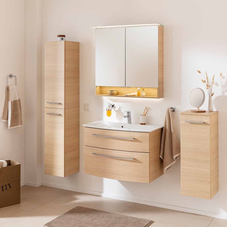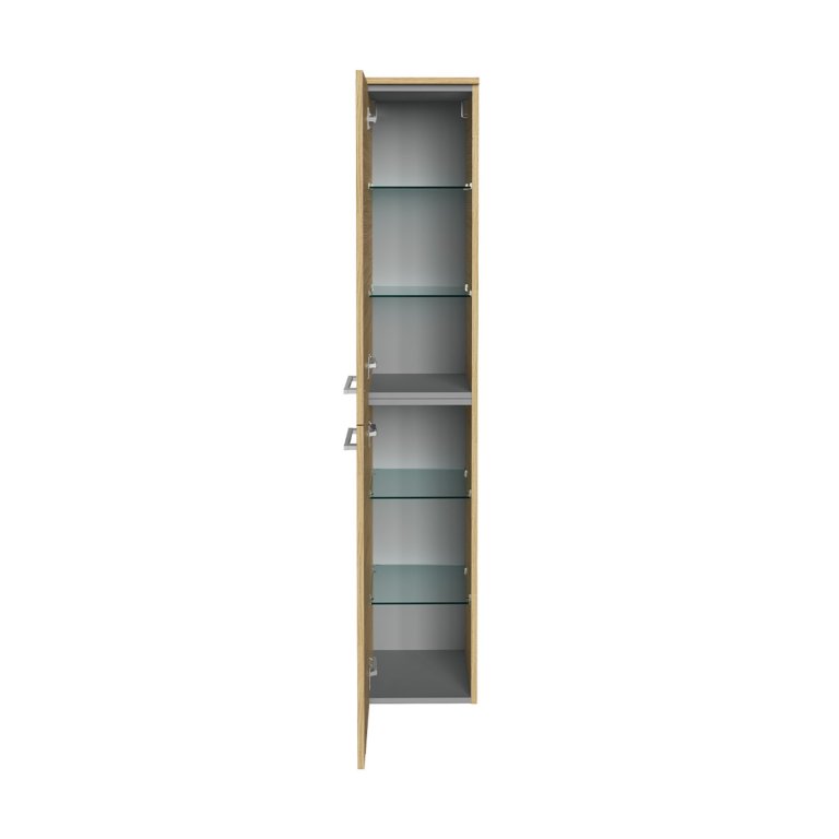 Iščete visoko kopalniško omarico z veliko prostora za shranjevanje, ki se popolnoma prilega večjim in manjšim kopalnicam? Potem je nova dvodelna kopalniška omarica iz serije B.STYLE znamke Fackelmann prava izbira za vas! Omara je v elegantnem dekorju Sandeiche ter je široka 30 cm, zato ponuja prostorno notranjost, ne da bi pri tem v vaši kopalnici zavzela veliko prostora. Nežen, svetel ton lesa s sivim hrbtiščem in kromiranimi ročaji ustvarja sodoben, skandinavski videz, ki bo navdušil vse ljubitelje minimalističnega pohištva. Za urejeno notranjost poskrbijo štiri steklene police, ki omogočajo dobro organizacijo in shranjevanje vseh kopalniških pripomočkov. Mehko zapiranje vrat s pomočjo kakovostnih blažilcev zagotavlja udobno uporabo brez hrupa. Zahvaljujoč dvodelni konstrukciji in temu, da je dostavljena že sestavljena, je omarica hitro pripravljena za montažo in bo brez težav našla svoje mesto v vaši kopalnici. Kakovost »Made in Germany« zagotavlja dolgo življenjsko dobo in visoko natančnost izdelave.