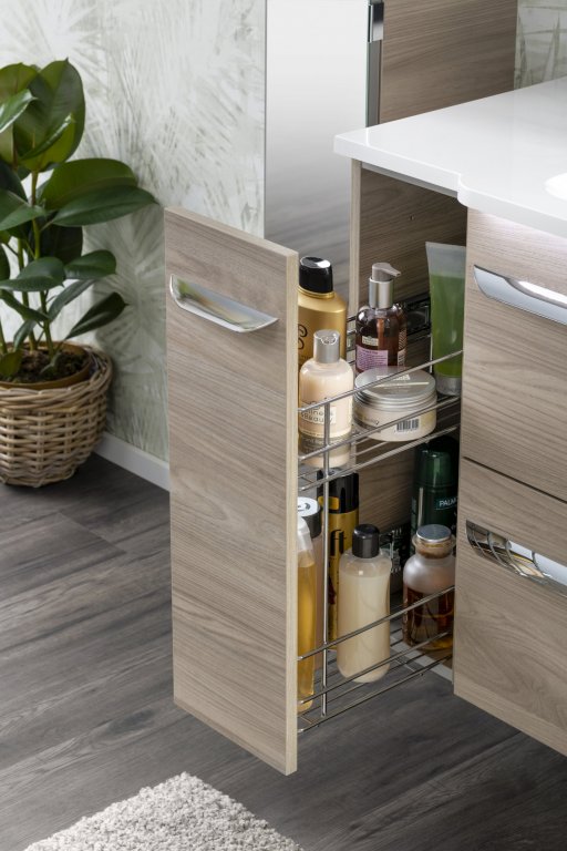 Iščete praktično in estetsko rešitev za svojo kopalnico? Fackelmann LUXOR viseča omarica v dekorju srebrno sive barve navdušuje s pridihom narave. Kompaktna struktura in klasičen dizajn prinašata občutek domačnosti in elegance v vsako kopalnico. Izvlečna vrata se mehko in tiho zapirajo zahvaljujoč vgrajenemu Soft‑Close sistemu. V notranjosti sta dve kovinski polici (rešetke), ki omogočata urejeno shranjevanje. Zaradi premišljene zasnove serije LUXOR je ta omarica idealna dopolnitev umivalniškim omaricam iz serije LUXOR (art. št. 79801 in 79803), ki jih prav tako najdete v naši spletni trgovini. Z dodajanjem ene ali dveh 20-centimetrskih omaric lahko širino omarice pod umivalnikom (79801, 79803) enostavno razširite od 80 do 120 cm – za večjo fleksibilnost in uporabnost. Izdelana je v Nemčiji, dostavljena je predhodno sestavljena za hitro in enostavno integracijo v vašo kopalnico.