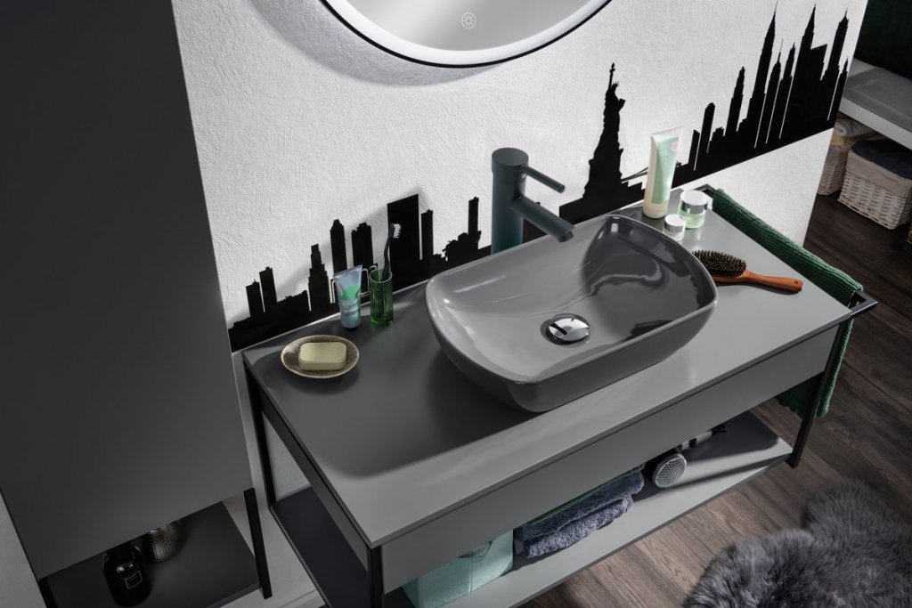 Oblika tega elegantnega nadgradnega umivalnika iz serije NEW YORK znamke Fackelmann je stičišče klasičnega in modernega dizajna. S širino 50 cm in sivo keramično površino je prava paša za oči v vsaki sodobni kopalnici. Ovalna oblika dodaja mehke linije in eleganco, hkrati pa zagotavlja dovolj prostora za udobno uporabo. Keramika kot material je zelo higienična – odporna je proti praskam in raznim kemikalijam ter zavira razvoj bakterij. Umivalnik je opremljen z odtokom in nima preliva, kar ustvarja vizualno čist in estetsko dovršen videz. Popolno se lahko kombinira z omaricami pod umivalnikom iz serij NEW YORK ali NATURA v širini 88, 93 ali 108 cm (artikli 84903, 84907, 79712, 84913, 84917).