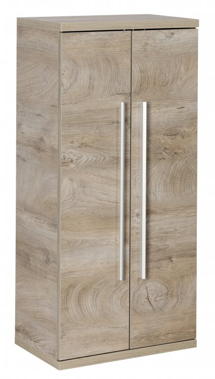 Dvojna midi omara iz serije STANFORD znamke Fackelmann bo s svojim elegantnim videzom v vašo kopalnico prinesla pridih ekskluzivnosti. Omarica je izdelana v dekorju Nature Oak, ki ustvarja moderen in hkrati topel izgled. Kovinski ročaji dodatno poudarijo kakovosten dizajn. Omarica je opremljena z dvemi vrati z mehkim zapiranjem (Soft-Close sistem), kar omogoča skoraj neslišno odpiranje in zapiranje. S tremi steklenimi policami in višino 106 cm nudi dovolj prostora za pregledno in urejeno shranjevanje vseh kopalniških potrebščin. Omarica je izdelana v Nemčiji z veliko pozornostjo do detajlov in je dostavljena že sestavljena, pripravljena na takojšnjo namestitev v vaši kopalnici.