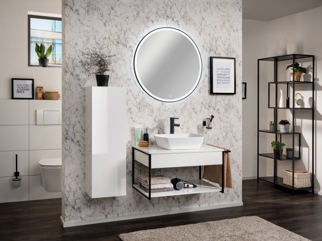 Iščete okroglo ogledalo, ki bo v vašo kopalnico vneslo značilen industrijski čar? Okroglo LED ogledalo s premerom 80 cm iz serije NEW YORK znamke Fackelmann je popolna izbira za vas. Črn okvir učinkovito poudari obodno LED osvetlitev ogledala in ustvarja impresiven izgled. Prilagodljive LED luči omogočajo prilagajanje osvetlitve vašim potrebam in razpoloženju. Zahvaljujoč inteligentnemu senzorskemu stikalu je upravljanje okroglega ogledala preprosto in brez dotika.