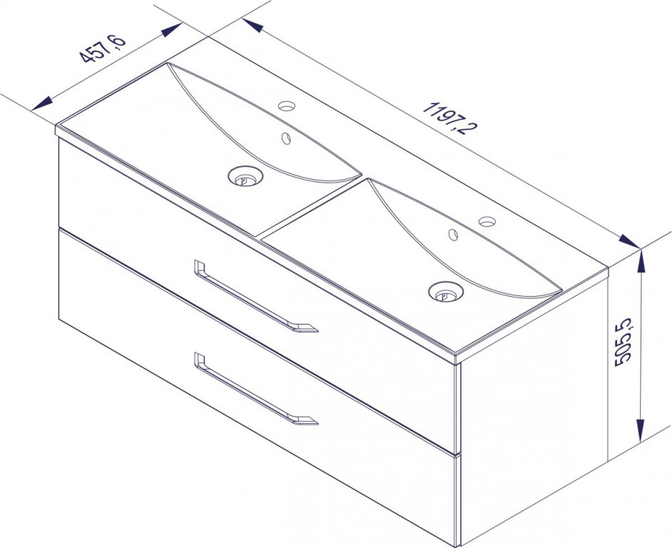 Dimenzije umivalnika: širina 120 cm, globina 46 cm