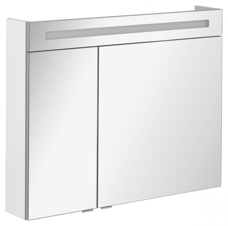 Dvoja zrcalna vrata z mehkim zapiranjem omogočajo tiho uporabo, notranje ogledalo na obeh vratih pa ustvarja 3D-učinek. Dve stekleni polici nudita dovolj prostora za shranjevanje kozmetike in kopalniških pripomočkov. V notranjosti sta integrirana stikalo in vtičnica.
