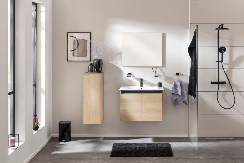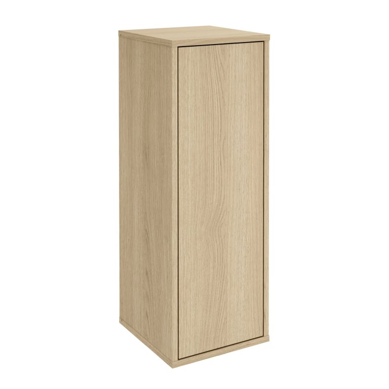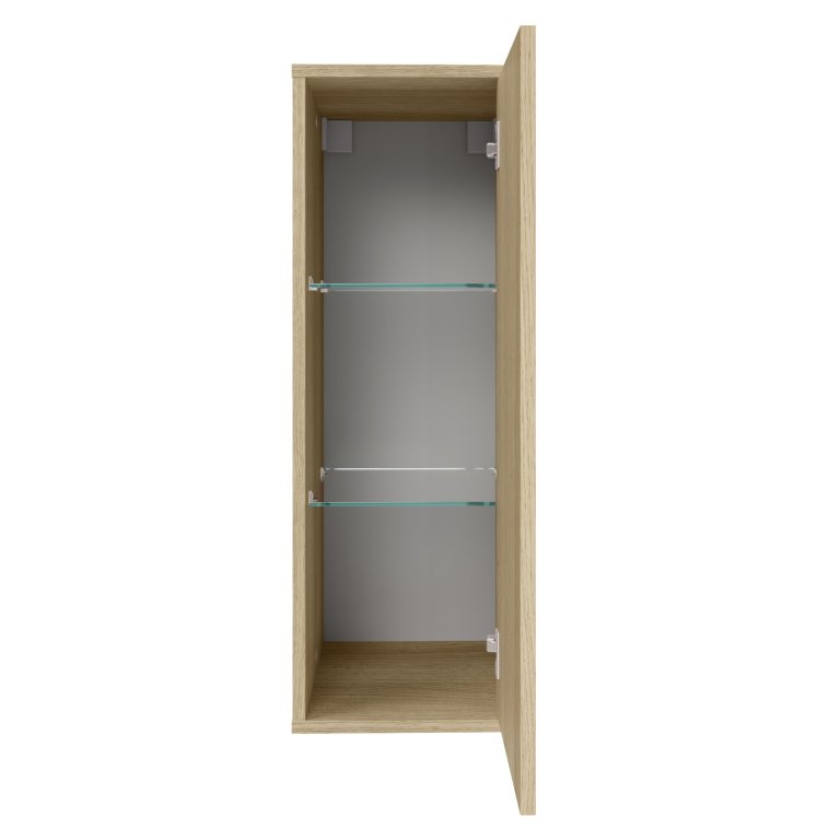 Srednje visoka omarica Fackelmann Compact Line širine 30 cm v elegantni Lindberg-Eiche barvi združuje kompakten dizajn in praktično shranjevanje. Dve stekleni polici omogočata pregledno organizacijo kopalniških pripomočkov, vrata brez ročajev z odpiranjem na pritisk pa poudarjajo sodoben, čist videz. Zaradi možnosti levega ali desnega odpiranja se omarica prilagodi vašemu prostoru.