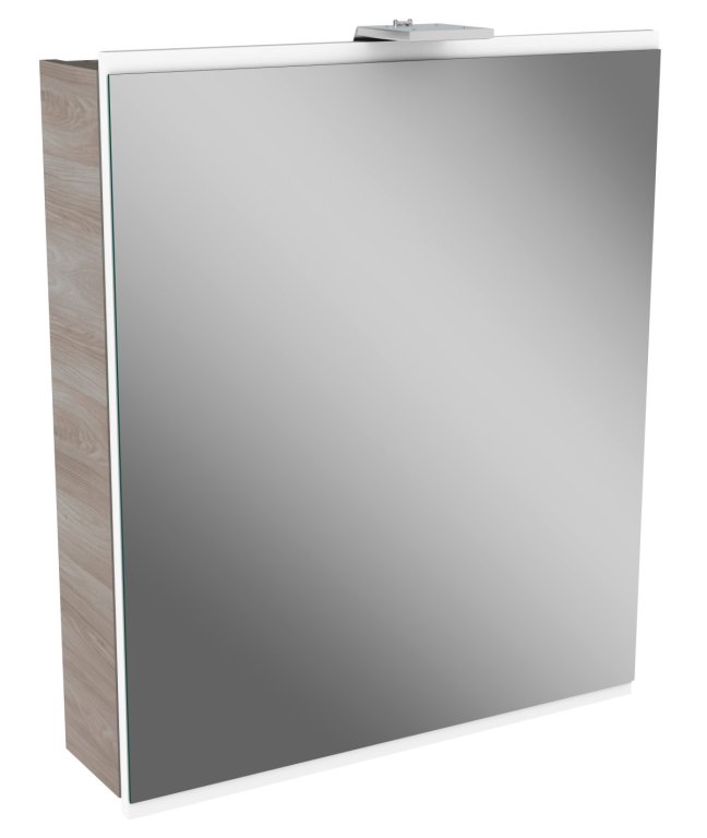 Zrcalna vrata z mehkim zapiranjem omogočajo tiho in udobno uporabo. Posebnost omarice je 3 mm debelo ogledalo, nameščeno na leseni plošči v enaki barvi kot fronta, kar ustvarja eleganten videz uokvirjenega ogledala. Omarica je dobavljena razstavljena z enostavnimi navodili za montažo.