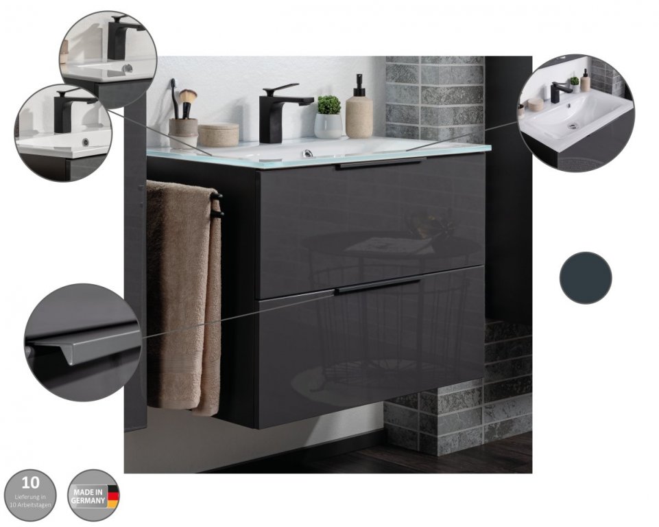 S svojo barvno shemo prinaša trenutni trend v vašo kopalnico.Dva predala s kakovostnim sistemom mehkega zapiranja zagotavljata dovolj prostora za shranjevanje v vaši kopalnici dodatki.Predale lahko preprosto odprete in zaprete z aluminijastim ročajem v enaki barvi kot sprednji del.