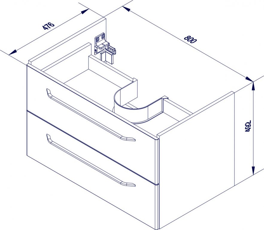 Omarica je primerna za keramični umivalnik (št. artikla 84200) in jo je mogoče dopolniti z LED osvetlitvijo ConturaLight (št. artikla 80109) za posredno osvetlitev predalov. Umivalnik in osvetlitev nista vključena, ju je možno kupiti ločeno. Izdelano v Nemčiji, dobavljeno v ploskem pakiranju z navodili za montažo.