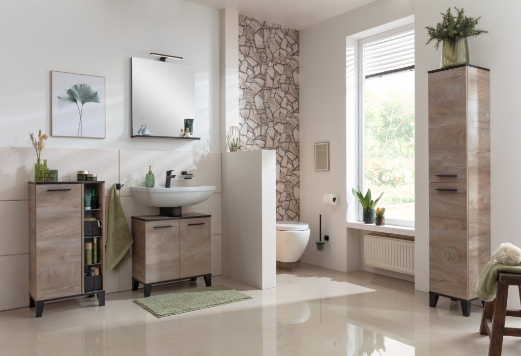 Ogledalo s polico TE-A znamke Fackelmann vaši kopalnici dodajo pridih elegance. Praktična polica ponuja prostor za vsakodnevne kozmetične potrebščine, tako da so vedno pri roki. Ogledalo v klasični Nature Oak barvi se harmonično poda k različnim slogom opreme in prostoru doda prefinjen poudarek.