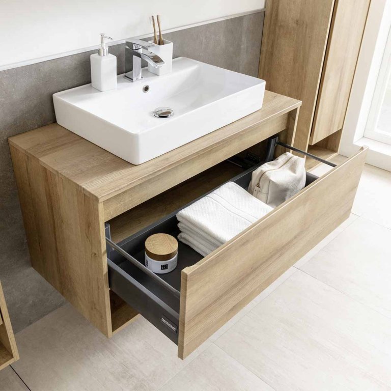 Set kopalniškega pohištva NATURA znamke Fackelmann združuje omarico z ogledalom, omarico za umivalnik in keramični umivalnik v popolno, stilsko usklajeno celoto. S svojo moderno zasnovo in naravnimi materiali ustvarja v kopalnici občutek topline ter brezčasne elegance, hkrati pa sledi aktualnim trendom opremljanja.