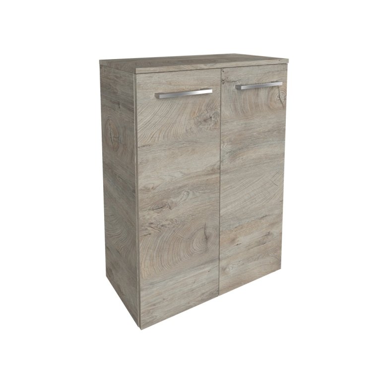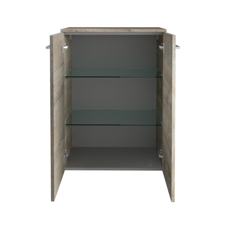 Dvakratno praktično! Dvakrat več prostora! Dvojna midi omara v trendovskem dekorju Nature Oak ni le popolna izbira za elegantno kopalnico, ampak je tudi popolnoma v koraku s sodobnimi oblikovalskimi trendi. Nevtralna barva omarice iz serije B.STYLE znamke Fackelmann ustvari toplo atmosfero v prostoru. S širino več kot 60 cm in dvema steklenima policama ponuja ta omarica veliko prostora za shranjevanje vaših kopalniških pripomočkov – ostali bodo dobro organizirani in pri roki. Videz in otip materiala vas bosta prepričala, saj posnemata pravi hrast. Mehko zapiranje obeh vrat poskrbi za dodatno udobje, medtem ko kromirana ročaja dodata pridih elegance. Fackelmannova dvojna omarica B.STYLE širine 60 cm je izdelana v Nemčiji in vam je dostavljena že sestavljena – za hitro in brezskrbno namestitev.