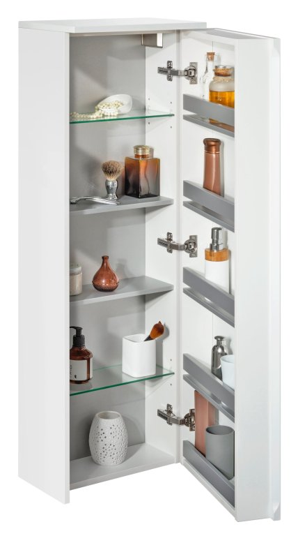 Fackelmann srednje visoka omarica, 41 cm, bela s plitvo globino 26 cm ponuja praktično rešitev za manjše kopalnice. Bela barva prostor optično osveži, posebnost pa so vrata v slogu z dodatnimi shranjevalnimi predali za stekleničke, tube in druge manjše izdelke.