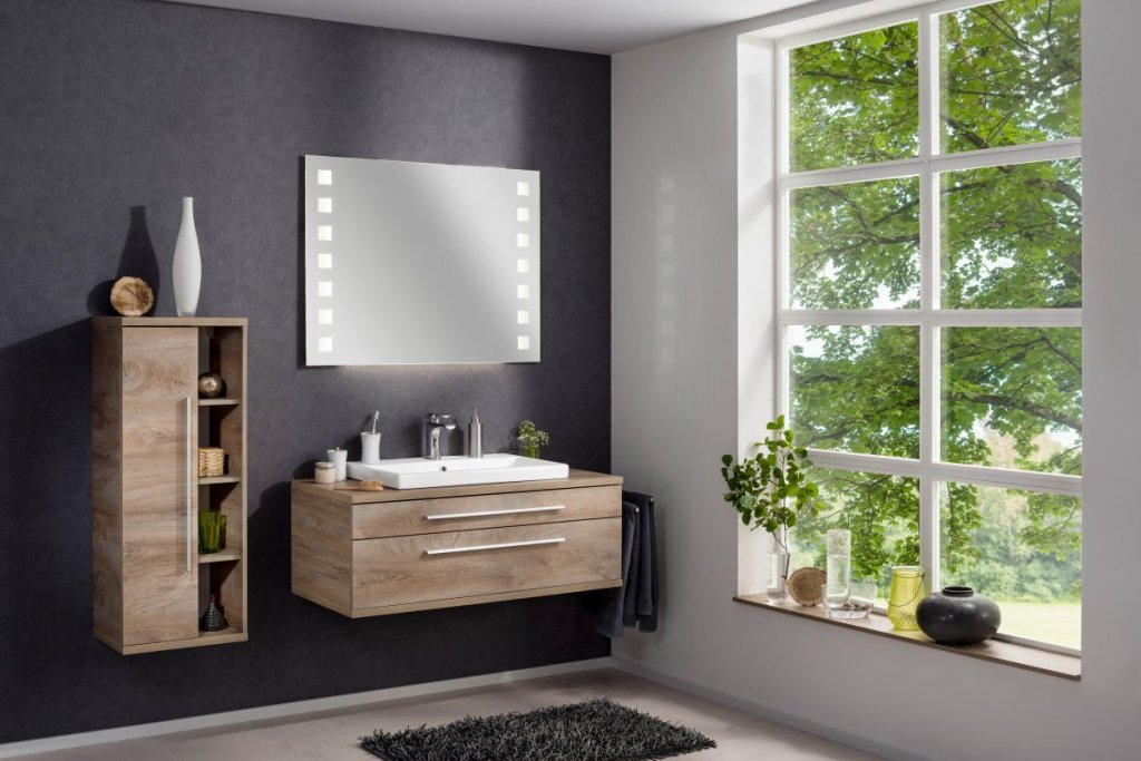 Midi omara iz serije STANFORD z odprtim regalom predstavlja estetsko dovršen in praktičen dodatek za vsako sodobno kopalnico. Zahvaljujoč možnosti dekoracije odprtih polic lahko omarico popolnoma prilagodite svojemu slogu in ustvarite edinstven kos pohištva. Dekor Nature Oak poudarja naraven značaj omarice, medtem ko srebrni ročaj doda moderen pridih. Vrata z levim odpiranjem in mehkim zapiranjem (Soft-Close sistem) omogočajo tiho uporabo, tri steklene notranje police pa zagotavljajo dovolj prostora za urejeno shranjevanje. Dodatne tri odprte police so idealne za dekorativne ali pogosto uporabljene predmete. Omarica je izdelana v Nemčiji z veliko pozornostjo do detajlov in dostavljena že sestavljena – za hitro in brezskrbno montažo v vašo kopalnico.