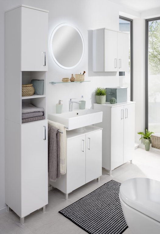 Fackelmann LED okroglo ogledalo, Ø 60 cm, z obdajajočo osvetlitvijo je brezčasen poudarek za kopalnico ali sodoben bivalni prostor. Nevtralno bela svetloba omogoča natančno urejanje, saj jasno poudari podrobnosti pri ličenju, britju ali vsakodnevni negi.