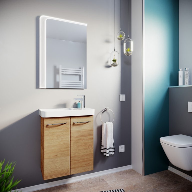 Fackelmann MILANO LED ogledalo s širino 55 cm je stilska dopolnitev vseh sodobnih kopalniških serij Fackelmann. Njegova nevtralna in elegantna podoba omogoča enostavno kombiniranje z drugimi serijami. Posebnost tega stenskega ogledala je LED osvetlitev, ki ustvarja prijetno svetlobno atmosfero v prostoru, hkrati pa je zamenljiva – za dolgotrajno uporabo. Ogledalo je dostavljeno že sestavljeno in je pripravljeno na takojšnjo namestitev in priklop v vaši kopalnici. Ogledalo MILANO je več kot le ogledalo – je praktičen estetski element, ki prostoru doda vrednost.