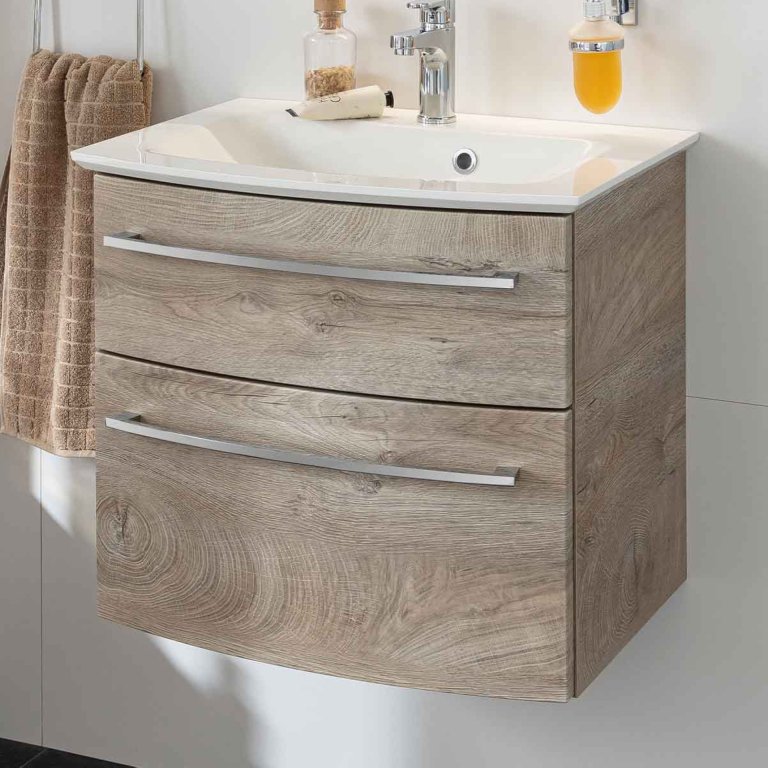 Iščete popoln umivalnik za svoj dom? Potem je 2-delni komplet iz serije B.STYLE znamke Fackelmann odlična izbira. Rahlo zaobljena predala s kromiranima ročajema dajeta kopalniški omarici pridih lahkotnosti in elegance. Dva prostorna predala z mehkim zapiranjem (Soft-Close) nudita veliko prostora za shranjevanje in s pomočjo vgrajenega pripomočka za organizacijo poskrbita za red in preglednost – vsi vaši kopalniški pripomočki bodo vedno pri roki. Moderni dekor Nature Oak v vaši kopalnici ustvari toplo in trendovsko atmosfero. Umivalnik iz litega marmorja v beli barvi sledi linijam omarice in skupaj tvorita popolno celoto. Komplet je idealen tako za večje kot za manjše kopalnice. Fackelmann Kopalniško pohištvo je izdelano v Nemčiji z veliko pozornosti do detajlov in vam je na dom dostavljeno že sestavljeno, kar omogoča hitro in enostavno namestitev.