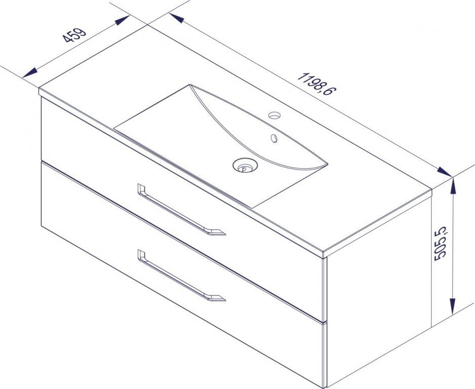 Dimenzije umivalnika: širina 120 cm, globina 46 cm