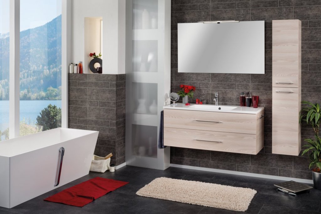 Set kopalniškega pohištva B.clever znamke Fackelmann združuje omarico za umivalnik in umivalnik ter je idealna izbira za sodobno kopalnico. Ohišje in fronta omarice v Alaska Esche barvi ustvarjata prefinjen in eleganten videz.