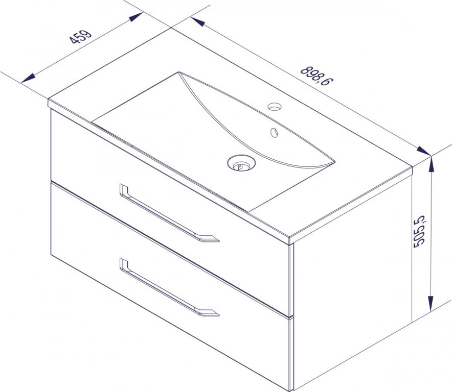 Dimenzije umivalnika: širina 90 cm, globina 46 cm