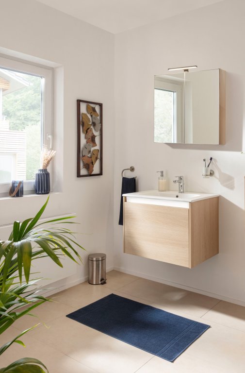 Dvodelni komplet Fackelmann Compact Line v elegantni Lindberg-Eiche barvi združuje sodoben dizajn in praktično uporabo. Omarica za umivalnik širine 70 cm z enim prostornim predalom in mehkim zapiranjem nudi dovolj prostora za shranjevanje, zamenljivi ročaji pa omogočajo prilagoditev videza vaši kopalnici. Globok keramični umivalnik (71 cm) zagotavlja udobno vsakodnevno uporabo in dopolnjuje čist, minimalističen videz kompleta.