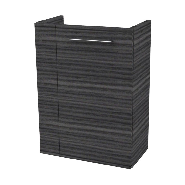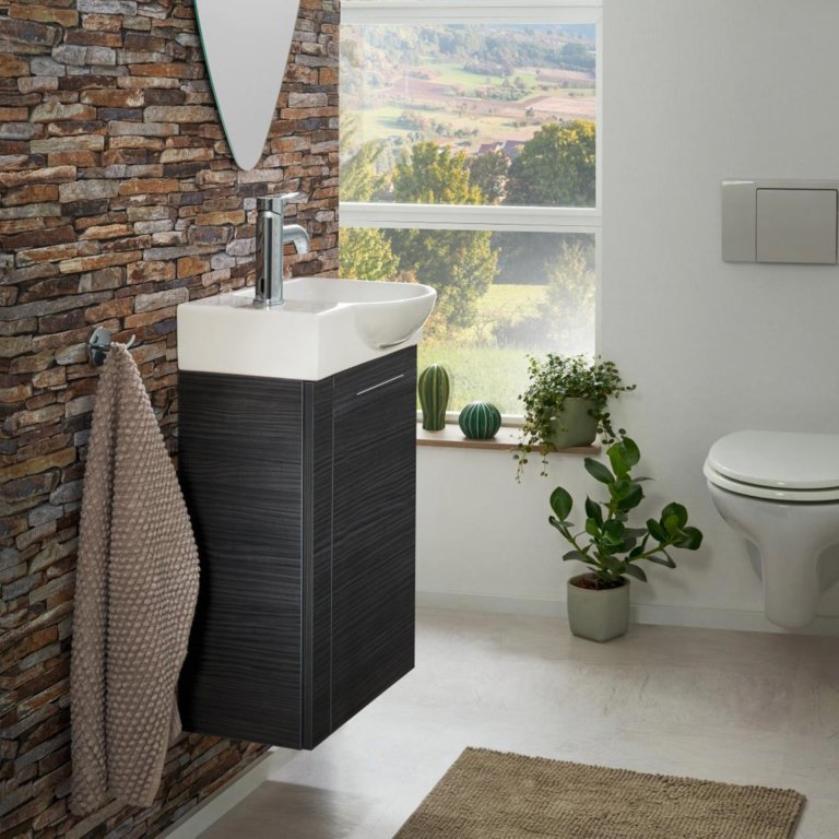 Omarica pod umivalnikom znamke Fackelmann v Dark-Oak barvi ustvarja resnično prijetno vzdušje. S širino 44 cm je ta kopalniška omarica zelo ozka, zato je idealna za majhne kopalnice in stranišča za goste. Težave s prostorom v majhnih kopalnicah so zdaj stvar preteklosti, saj omarica za umivalnik optimalno izkorišča razpoložljiv prostor pod umivalnikom in ponuja prostor za shranjevanje toaletnih potrebščin in dodatkov na polici. Omarica ima vrata z desnim tečajem. Na voljo so keramični umivalnik (št. artikla 82390) ali steklen (št. artikla 82397 in 82407), ki sedeta na omarico.