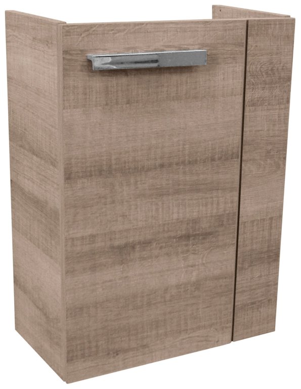 Omarica pod umivalnikom znamke Fackelmann v Graueiche barvi ustvarja resnično prijetno vzdušje. S širino 44 cm je ta kopalniška omarica zelo ozka, zato je idealna za majhne kopalnice in stranišča za goste. Težave s prostorom v majhnih kopalnicah so zdaj stvar preteklosti, saj omarica za umivalnik optimalno izkorišča razpoložljiv prostor pod umivalnikom in ponuja prostor za shranjevanje toaletnih potrebščin in dodatkov na polici. Omarica ima vrata z levim tečajem. Na voljo so keramični umivalnik (št. artikla 82390) ali steklen (št. artikla 82397 in 82407), ki sedeta na omarico.