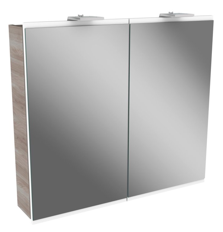 Zrcalna omarica Fackelmann Lima širine 80 cm združuje sodoben dizajn in praktično funkcionalnost. Zaradi zmanjšane globine (15,5 cm) je idealna tudi za manjše kopalnice. Rjavo Steinesche ohišje v kombinaciji z Belo barvo prostoru doda toplino, varčna LED-osvetlitev pa zagotavlja prijetno hladno belo svetlobo.
