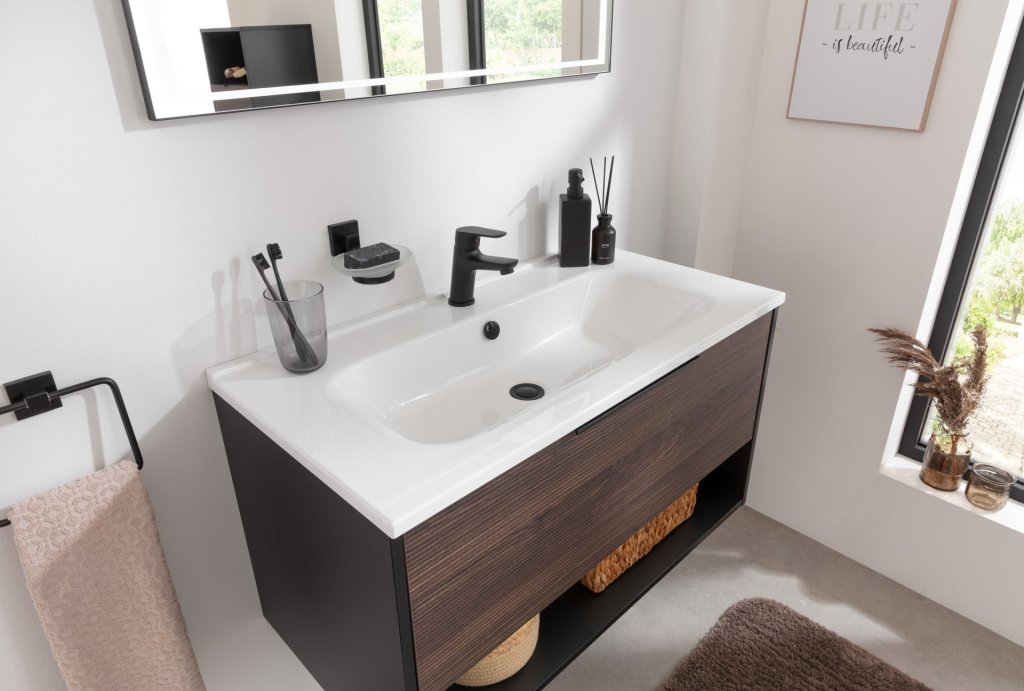 Kombinacija funkcionalnosti in sodobnega dizajna, popolna za vašo kopalnico. Dvodelni kopalniški set B.PARIS znamke Fackelmann, ki vključuje omaro pod umivalnikom in umivalnik iz litega marmorja, bo vaši kopalnici dodal brezčasno eleganco. Omarica ima predal v dekorju Rigoletto Eiche in ogrodje v mat črni barvi. Njen prostoren predal nudi obsežen prostor za shranjevanje. Poleg predala z mehkim zapiranjem ima omara tudi osvetljeno odprto spodnjo polico. Osvetlitev upravlja senzor gibanja na baterije, ki avtomatsko prižge luč ob vstopu v prostor, in jo po približno 30 sekundah brez gibanja samodejno ugasne. Za lažjo organizacijo poskrbi črna zložljiva košarica iz tekstila, ki se lepo poda osvetljenemu prostoru in omogoča organizirano shranjevanje manjših kopalniških pripomočkov. Po potrebi lahko dokupite dodatne košarice. Omaro dopolnjuje umivalnik iz litega marmorja z gladko površino in izjemno odpornostjo. Set je izdelan v Nemčiji. Dostavljen je že sestavljen, kar omogoča hitro in enostavno montažo.