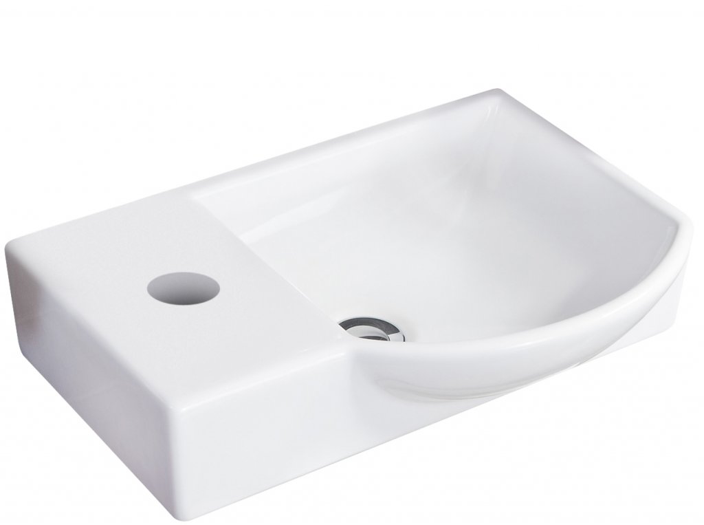 • FM Mini-keramični umivalnik 45x10.5x32cm bel, DESNI