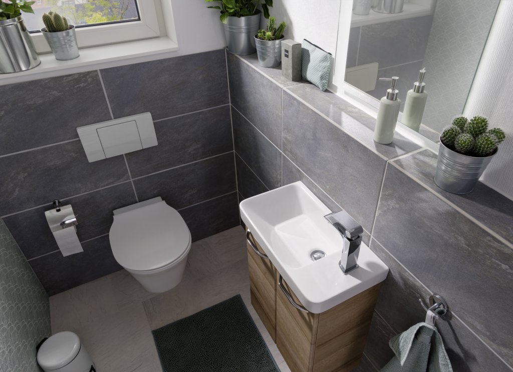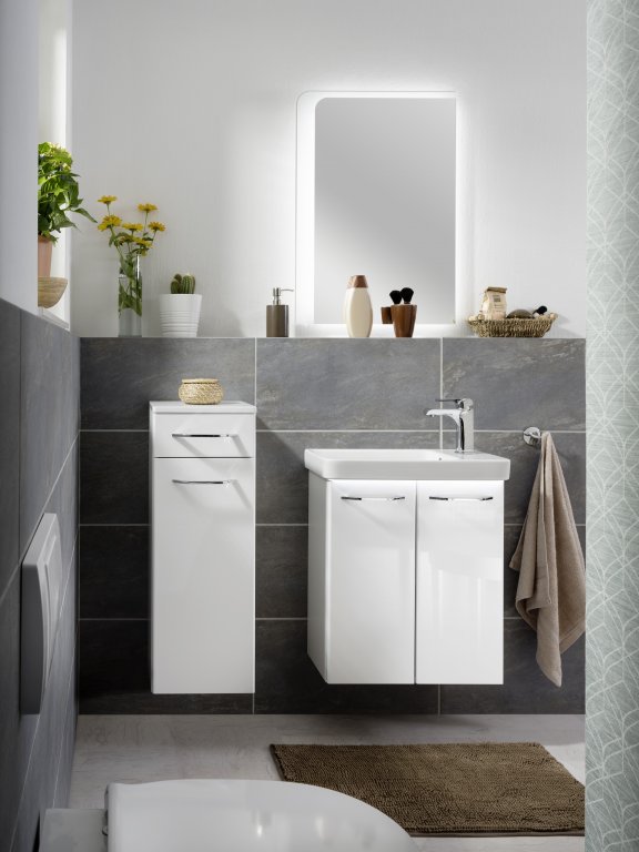 Keramični umivalnik se popolnoma prilega mini omaricam za umivalnik širine 52 cm serije MILANO (št. artikla: 84332, 84333, 84335).