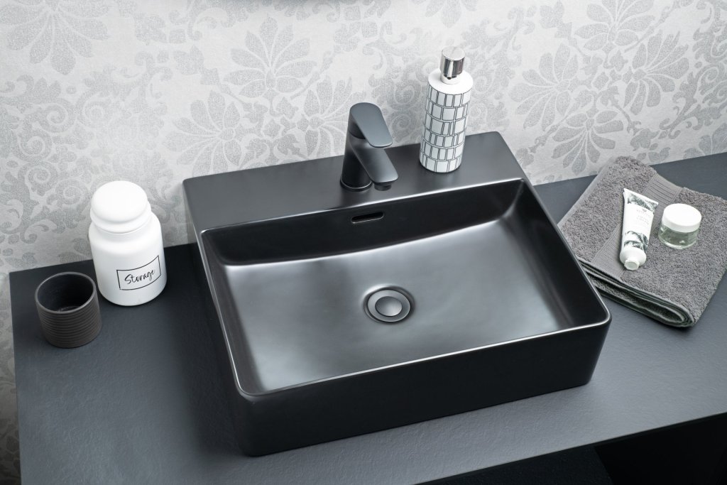 Z umivalnikom VAIDA znamke Fackelmann v mat črni barvi svoji kopalnici dodajte pridih modernosti in elegance. Umivalnik je bil zasnovan posebej za montažo na omarice, ki imajo pokrivno ploščo. Zaradi kakovostne keramike je odporen na bakterije in enostaven za čiščenje. Umivalniki iz keramike nudijo higieno in trajnost. VAIDA umivalnik Fackelmann v mat črni barvi ustvarja harmonično celoto z modernimi kopalniškimi omarami Fackelmann.