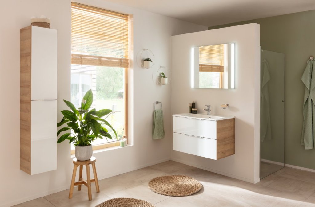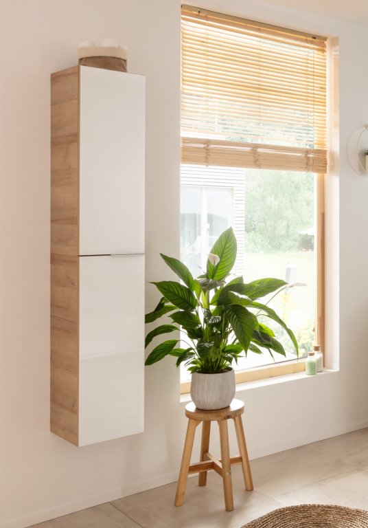 Visoka omarica Fackelmann B.Brillant z Belo visokosijajno stekleno sprednjo stranjo prinaša razkošen videz in dodaten prostor za shranjevanje v kopalnici. Štiri steklene police omogočajo pregledno organizacijo, vrata z mehkim zapiranjem pa zagotavljajo tiho in udobno uporabo. Kontrast med sijajno Belo stekleno fronto in Ast-Eiche okvirjem ustvarja sodoben in prestižen videz.