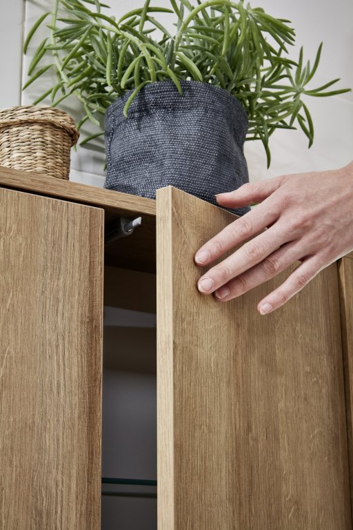 Dvojna midi omarica Finn 60 cm znamke Fackelmann v Ast Eiche barvi združuje praktičen prostor za shranjevanje in izjemen dizajn in praktičen prostor za shranjevanje ter je idealna za majhne kopalnice in stranišča za goste. Dvoja vrata se zlahka odpirajo in zapirajo z nežnim pritiskom, zahvaljujoč mehanizmu push-to-open.