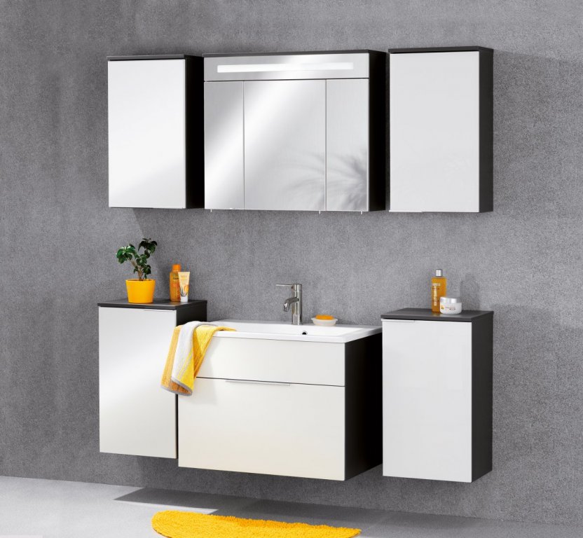 Za kopalniške stenske enote Fackelmann ponuja tudi Bele in Antracit kombinacije omaric. Kopalniška omarica je izdelana v Nemčiji.